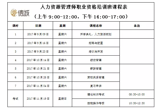 為此,廣東省德誠職業培訓學院將舉辦第8期人力資源管理師(三級/二級/一級)國家職業資格考前培訓班,現將有關事項通知如下:一、培訓內容: