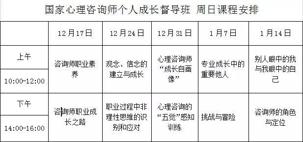 (2)上課時間: 12月17日開課,周日班,分5個周日上完。