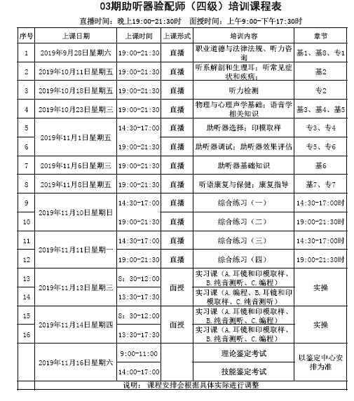 2、助聽器驗配師(四級)培訓班課程安排表