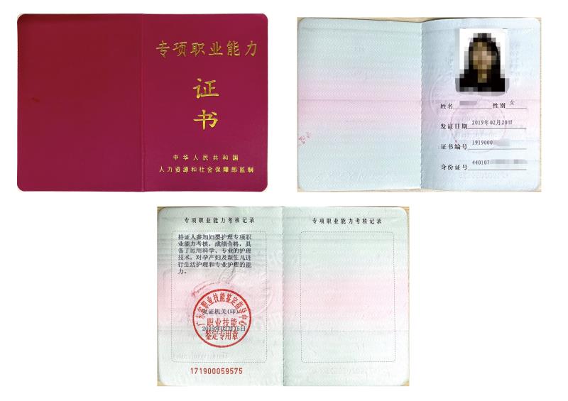 證書三已納入在廣東省德誠職業培訓學院和廣東南粵健康產業有限公司婦嬰護理服務人才庫。