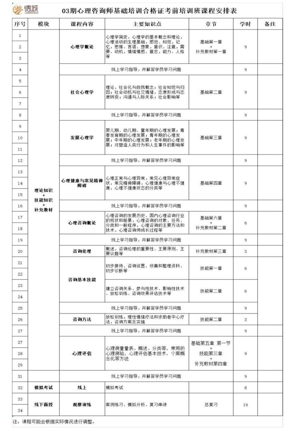 2、心理咨詢師基礎培訓合格證考前培訓班課程安排表