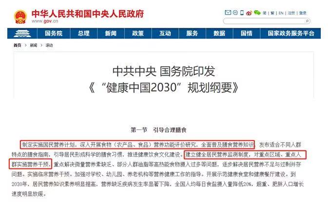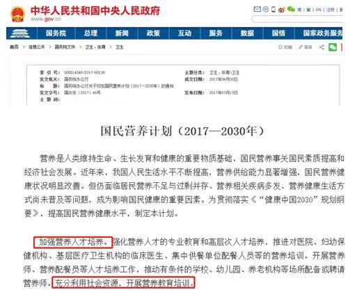 國務院發布的《健康中國行動(2019—2030年)》明確提出,到2022年要求每萬人中有一名公共營養師(營養指導員)。