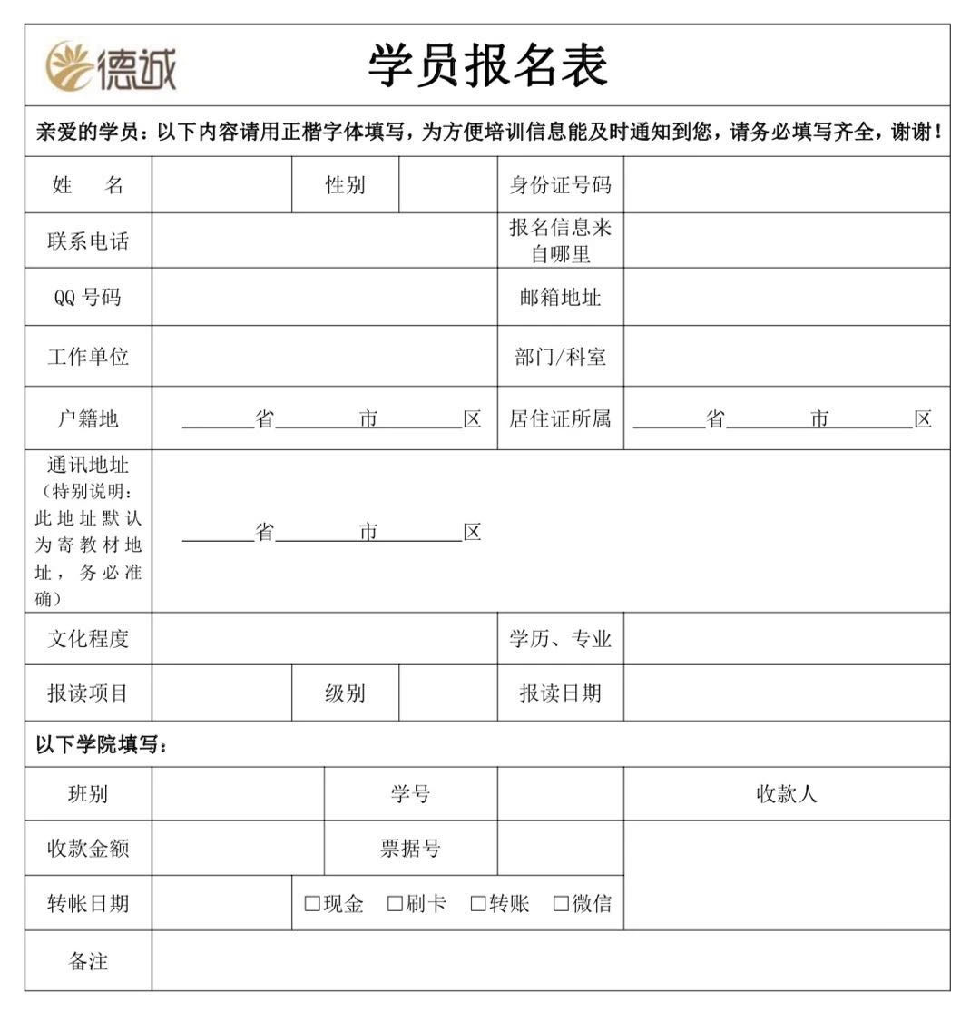 1、德誠學(xué)院《學(xué)員報(bào)名表》