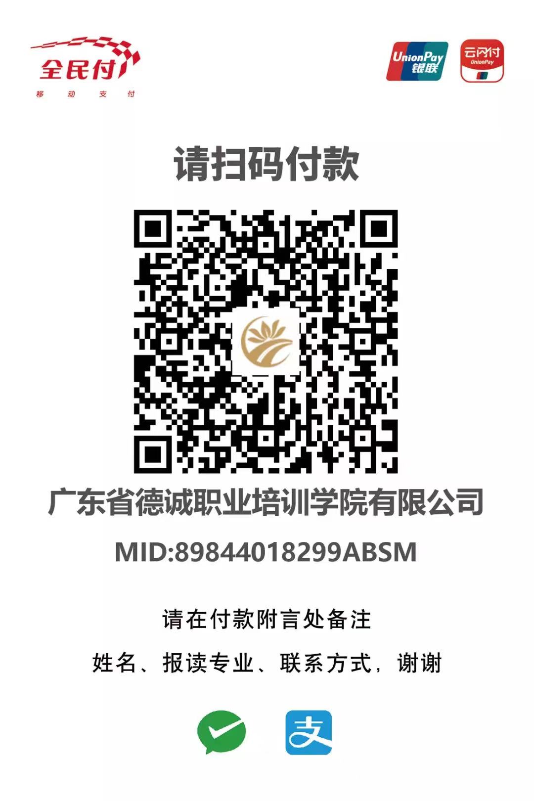 (請在付款附言處備注您的姓名、報讀專業、地區、電話號碼)