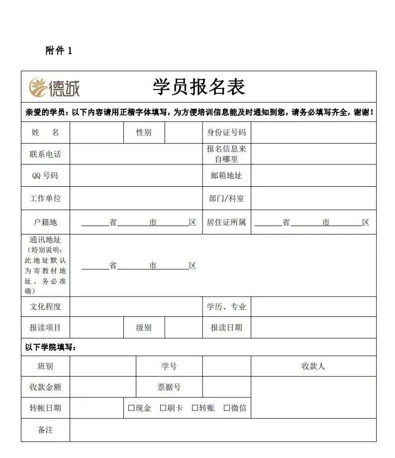 1、德誠學院《學員報名表》