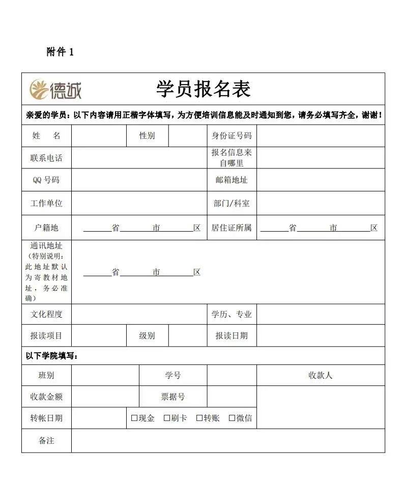 附件:1、德誠學(xué)院《學(xué)員報(bào)名表》