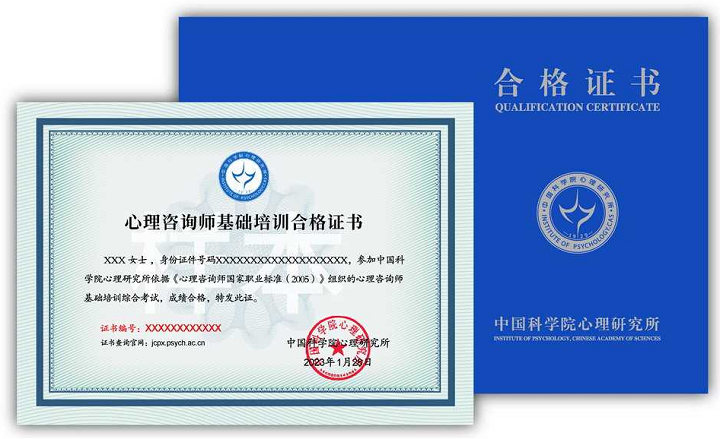 通過培訓并經過綜合考試合格者, 由中國科學院心理研究所頒發全國統一的《心理咨詢師基礎培訓合格證書》。