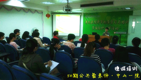 2014年11月22日下午,廣東省德誠職業培訓學院第50期公共營養師培訓在中山大學附屬第一醫院正式開班!此次培訓是為期11天的周末班,任課老師是來自南方醫科大學、中山大學、廣州醫學院、廣州中醫藥大學的教授、副教授以及公共營養師廣東省專家組的專家。