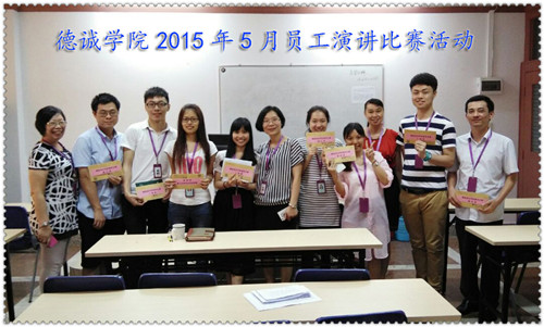 5月19日下午,廣東省德誠職業培訓學院在沙園校區大教室舉行了以培訓課程為主題的員工演講比賽。此次演講活動由招生部部長擔任主持,學院領導們出席了此次活動并擔任比賽評委,比賽活動井然有序,員工們都做好了充足準備。