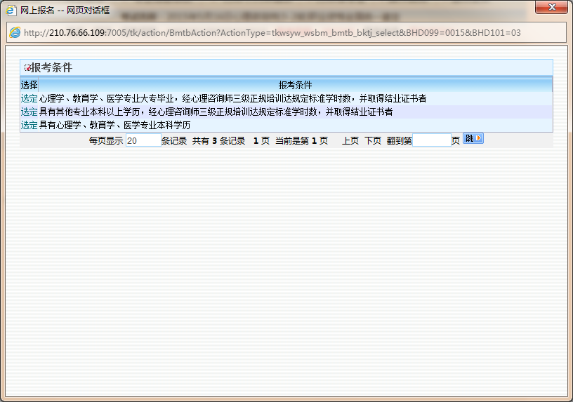 第二步:點擊2015年11月21日心理咨詢師職業資格全省統一鑒定,進入頁面如下圖: