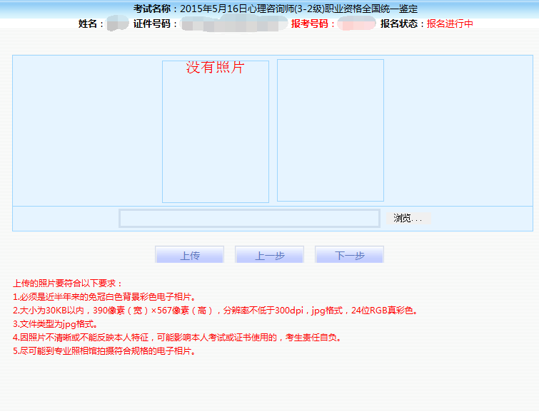 第十二步:點擊瀏覽選擇照片,再點擊 上傳,完畢后,請點擊 下一步”。進入頁面如下: