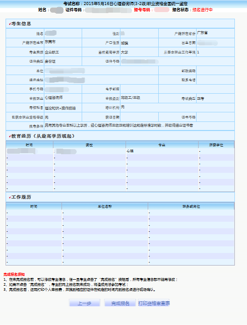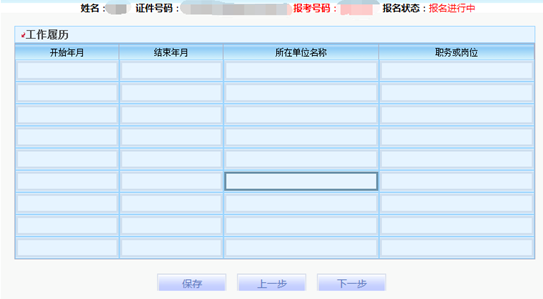 第十一步:填寫工作履歷后點擊 保存,然后點擊 下一步,進入頁面如下: