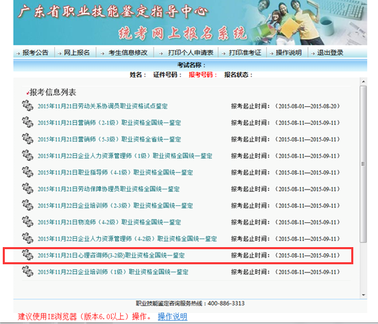 2015年11月21日心理咨詢師職業資格全省統一鑒定報考流程