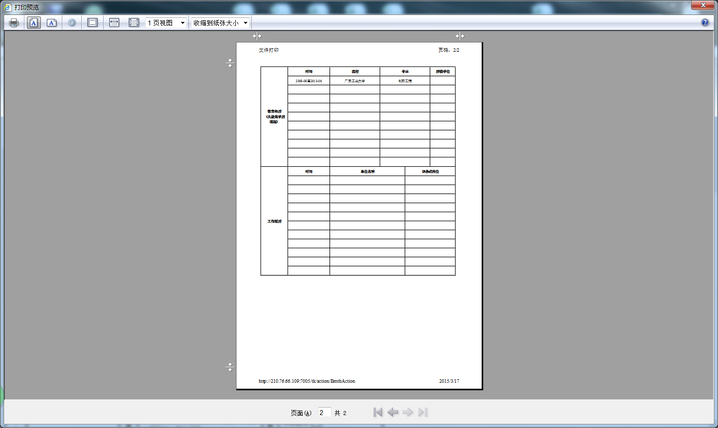 出現上方頁面后右擊鼠標選擇“打印預覽”,自行調整至如下的圖片規格(注意有兩頁)進行打?。呻p面打印,彩色黑白均可):