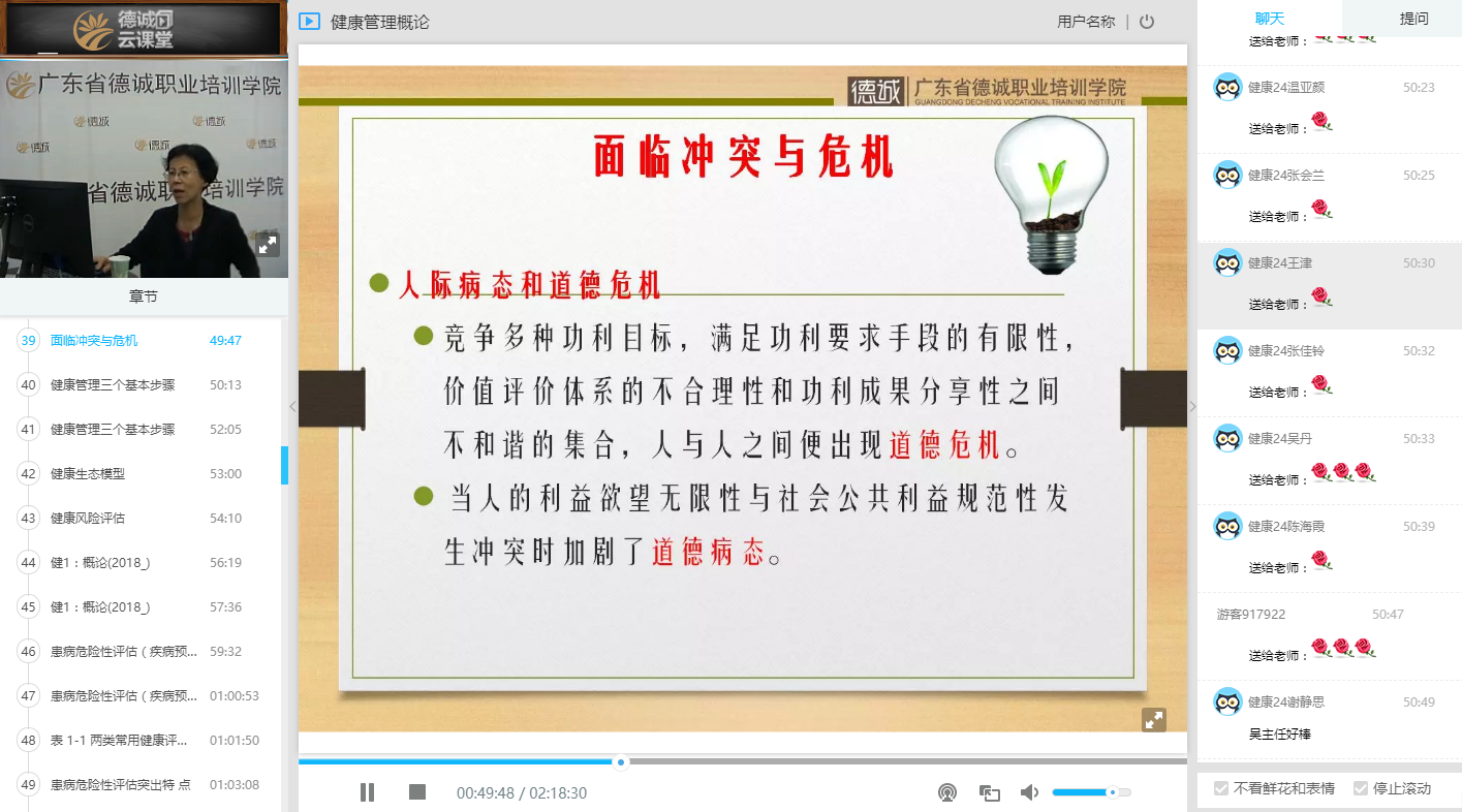 開班典禮上,班主任辛老師講述了班級管理的一些原則和細節,并詳細介紹了本次培訓的老師均由國家和省內健康管理領域具有豐富實踐和教學經驗的專家、教授授課,如當天晚上上課的是廣州市護理學會廣州分會常務理事吳教授。