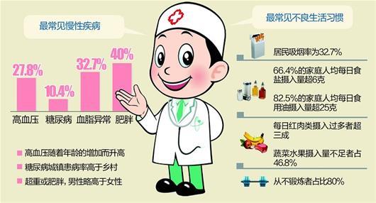 慢性病已成為危害我國居民健康的頭號殺手,我國慢性病危險因素也居高不下,我國現(xiàn)有吸煙人數(shù)超過3億,其中暴露于二手煙下的非吸煙者比例為72.4%;全國18歲及以上成人的人均年飲酒量為3升,其中有害飲酒比例達9.3%。