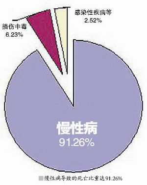 我國城市和農村因慢性病死亡占總死亡人數(shù)的比例分別高達85.3%和79.5%。