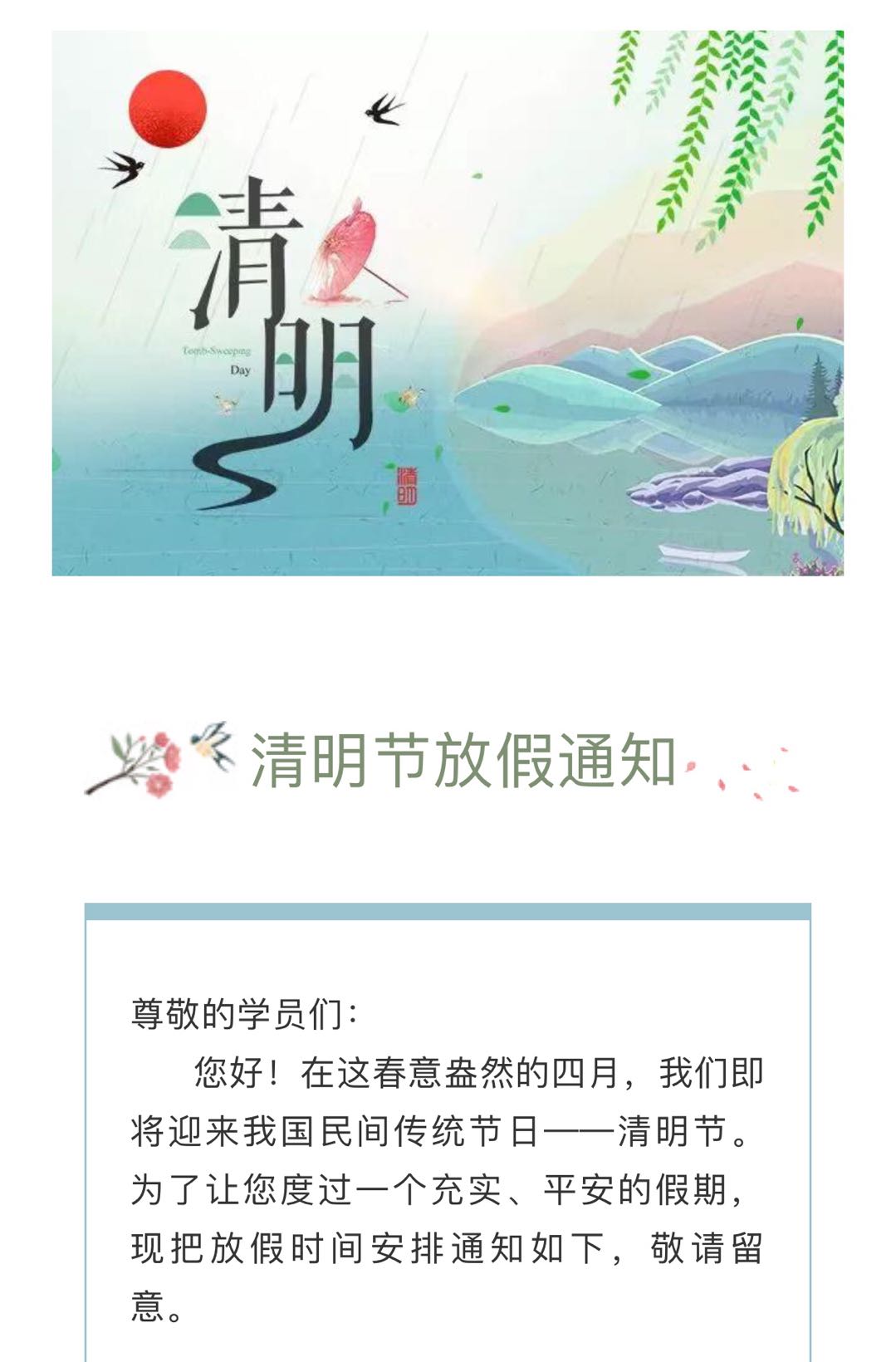 德誠學院清明節放假通知