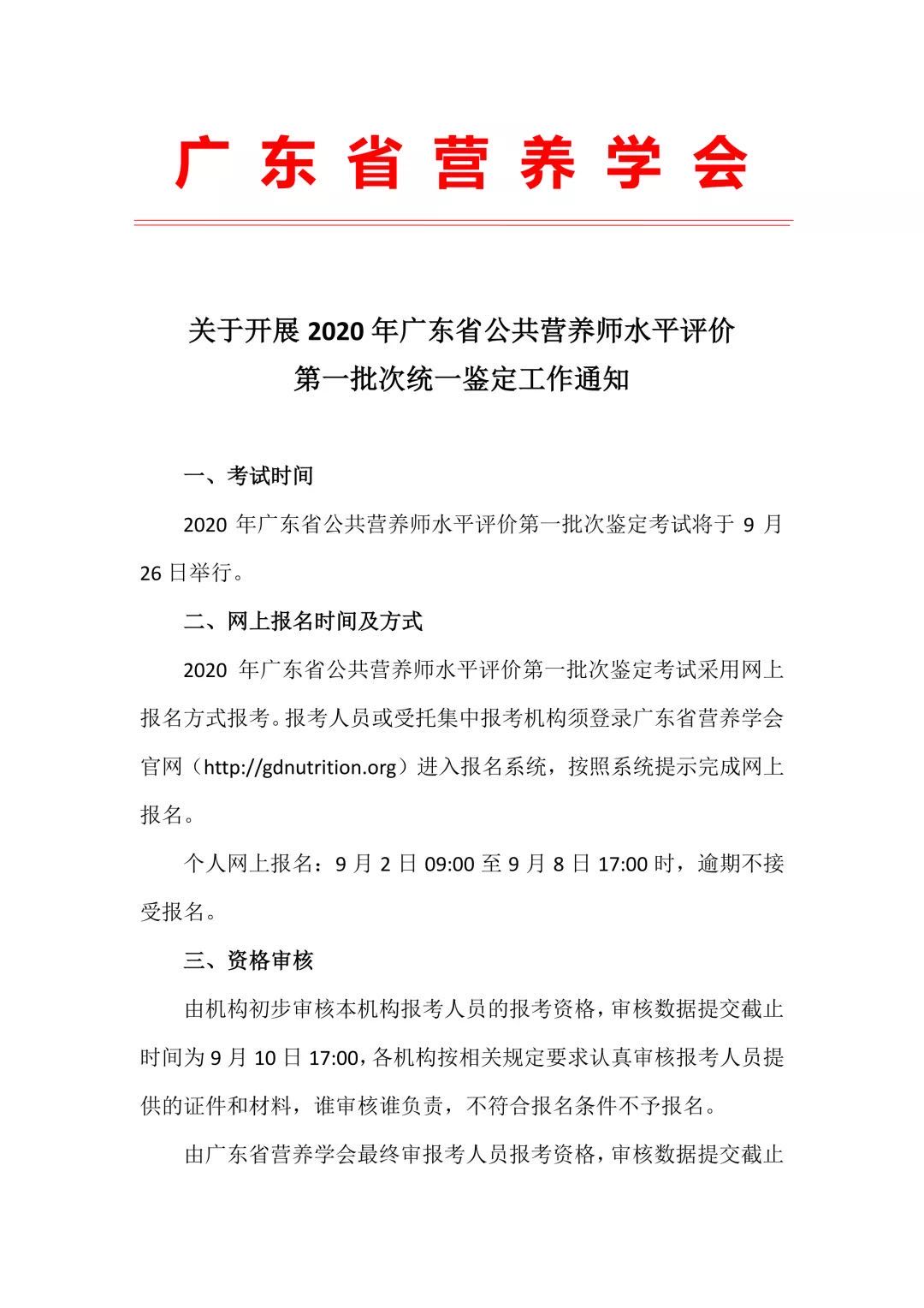 關于開展2020年廣東省公共營養師水平評價 第一批次統一鑒定工作通知