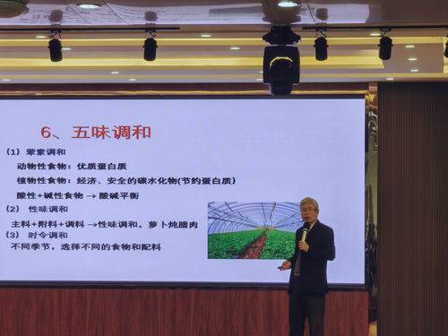 蔣卓勤教授首先給在座的師生介紹了我國公共營養師的發展歷程及前景,然后以“公共營養與健康、中醫調理與養生保健的關系”為主線,結合自身多年從業經驗,為大家解讀了營養學的相關知識,對營養學與人體健康,中醫調理與養生保健的關系做了精要的講解,為師生們建立起全民營養意識,并指導了如何運用營養學糾正自我日常生活的不良行為。會場座無虛席、聽眾聚精會神,課程得到師生們一致好評。