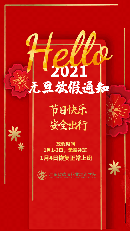 元旦放假通知來源:德誠教育 發布時間:2020-12-31