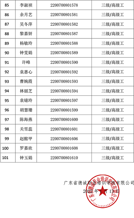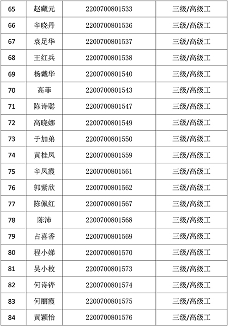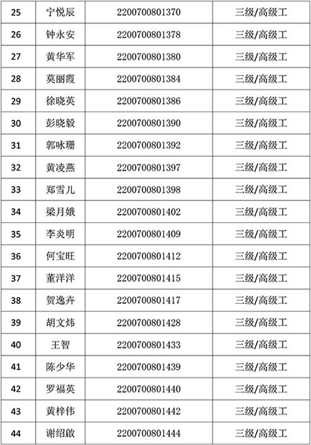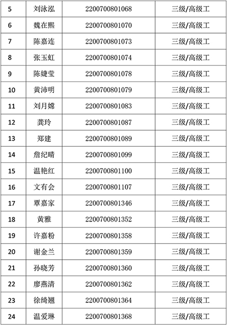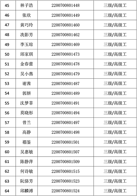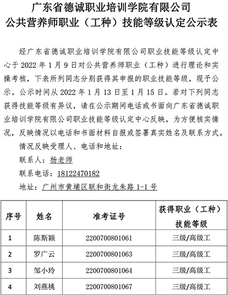 2022年1月9日公共營養師技能等級認定公示