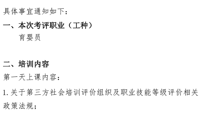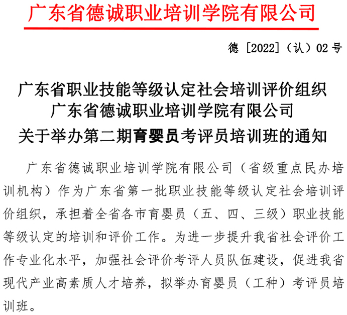 關于舉辦第二期育嬰員考評員培訓班的通知