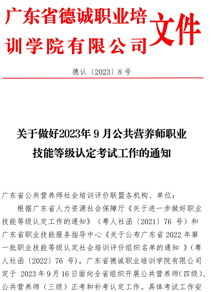 關于做好2023年9月公共營養師職業技能等級認定考試工作的通知