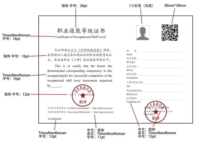 ?職業技能等級證書上不得使用“中華人民共和國”“中國”“中華”“國家”“全國”和“人力資源社會保障部門”“職業技能鑒定中心”“中國就業培訓技術指導中心”以及“職業資格”“資格憑證”“就業憑證”“錄用依據”等字樣;