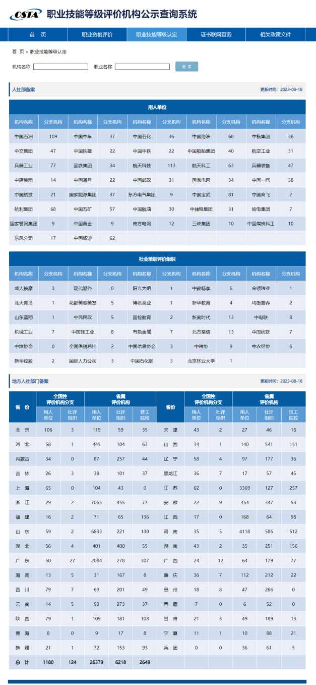 想獲得職業技能等級證書,一定要認準經人力資源社會保障部門備案公布的評價機構,大家可以登錄職業技能等級評價機構公示查詢系統(http://pjjg.osta.org.cn/)查詢經人力資源社會保障部門備案的評價機構相關信息