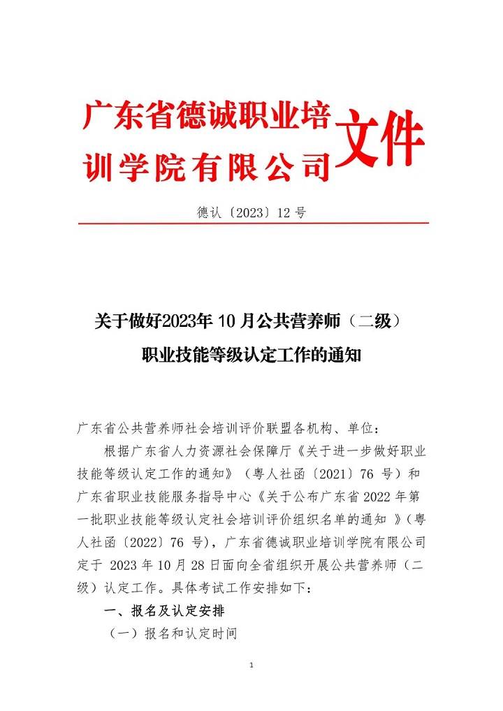關(guān)于做好2023年10月公共營(yíng)養(yǎng)師(二級(jí))職業(yè)技能等級(jí)認(rèn)定工作的通知來(lái)源:德誠(chéng)教育 發(fā)布時(shí)間:2023-09-23
