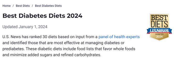 2024 年 1 月,《美國新聞與世界報道》發布了 2024 年度最佳飲食榜單,榜單邀請了飲食、營養、肥胖、飲食心理學、糖尿病和心臟病學家等專業從業者組成評審團,對近 40 種飲食模式進行評比,其中,地中海飲食繼續領跑整體最佳飲食榜單,得舒(DASH)飲食和健腦(MIND)飲食緊隨其后。