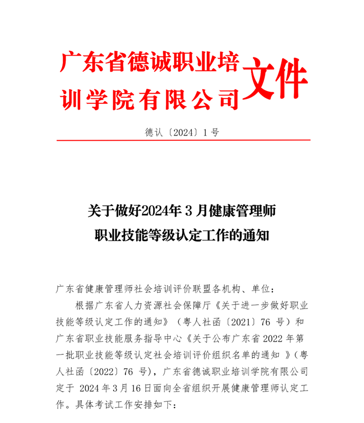 關于做好2024年3月健康管理師職業技能等級認定工作的通知