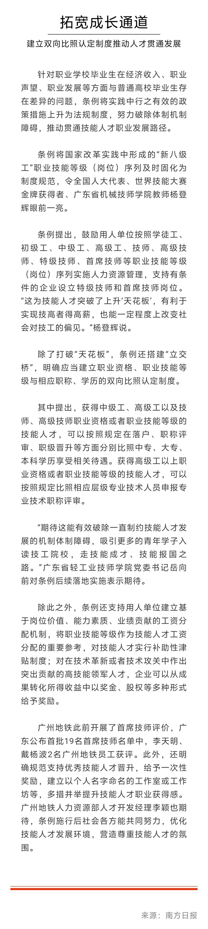 廣東在全國率先出臺關于技能人才發展的地方性法規